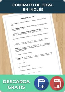 • Un formato de contrato de obra en inglés,  que podrás descargar gratis para editar en Word, Google Drive o PDF.