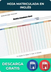 La hoja matriculada en inglés, o attendance sheet, es una herramienta que permite registrar la asistencia de los estudiantes a clases. Se trata de una tabla que contiene los nombres de todos los alumnos de un grupo. Junto a esta lista se ubican varias casillas para poder contabilizar las asistencias e inasistencias.